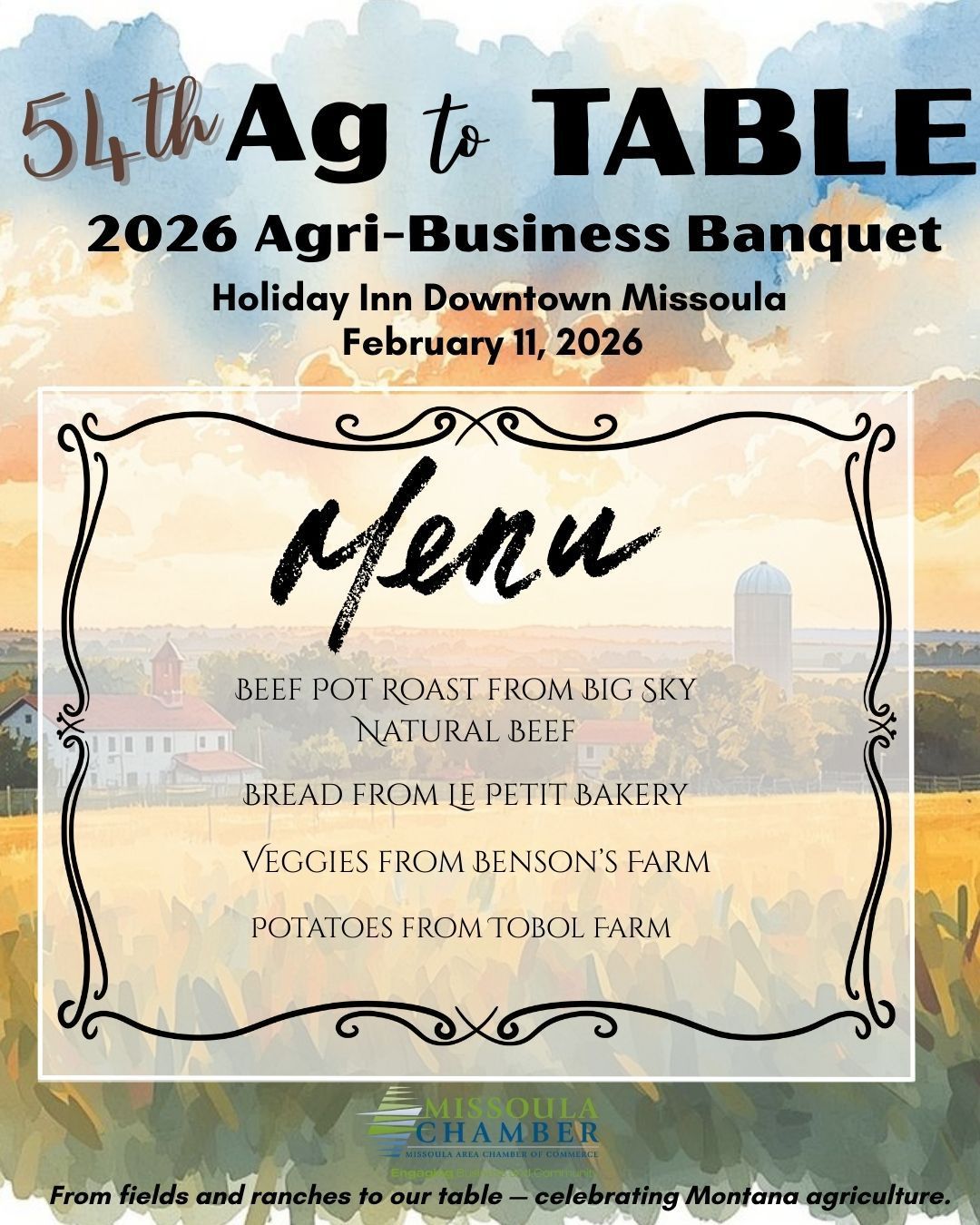 The Chamber’s annual Agri-Business Banquet provides a platform for local farmers and ranchers to connect with Missoula’s business leaders. This event allows the business community to express their gratitude for the invaluable contributions of these agricultural professionals to the area's economy. Attendees can look forward to a dinner crafted from locally sourced ingredients and enjoy vibrant entertainment throughout the evening.