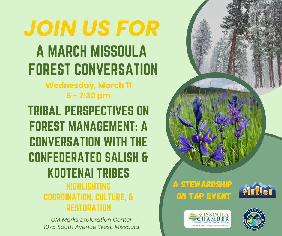 The Forest Conversations series is A Stewardship On Tap event co-hosted by the Missoula Chamber of Commerce's Forest Resources Committee and the Missoula Conservation District. In 2026 Forest Conversations will take place January 14, February 11, and March 11.